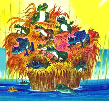 Жабенята на болотній купині замовкли. Нарешті одне з них запитало в маленького жабенятка: